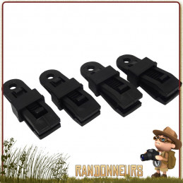 CLIPS ŒILLETS POUR TARP ET BÂCHE CAO - Lot de 4x Clips en plastique ABS robuste avec pince réglable de maintien pour bâche, abri et tarp bushcraft, survie. Cet œillet modulable permet de créer des points de tensions supplémentaires sur une bâche ou un tarp afin d'optimiser sa tension et fixation. Réglage de la pression de serrage. Facile à installer,...